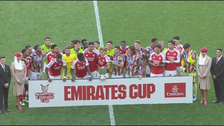 08月10日讯 酋长杯对阵,阿森纳3-0完胜毕巴。赛后现场举行了庆祝典礼。