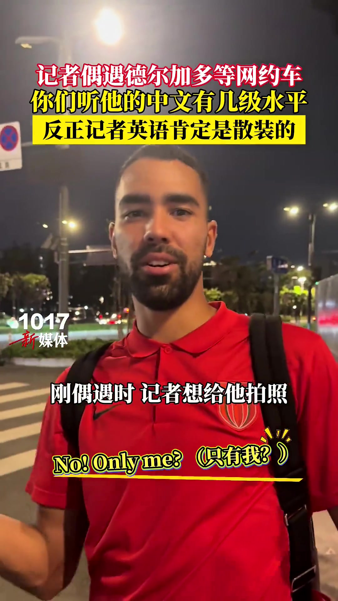 “四川交通播送”在社媒晒出一段记者偶遇德尔增多赛后恭候网约车的视频,视频中德尔增多用流利的中语说谈:“亚冠加油”,当记者要给他拍照时,德尔增多还说:“只拍我吗?整个!”并邀请记者与他一同合影。