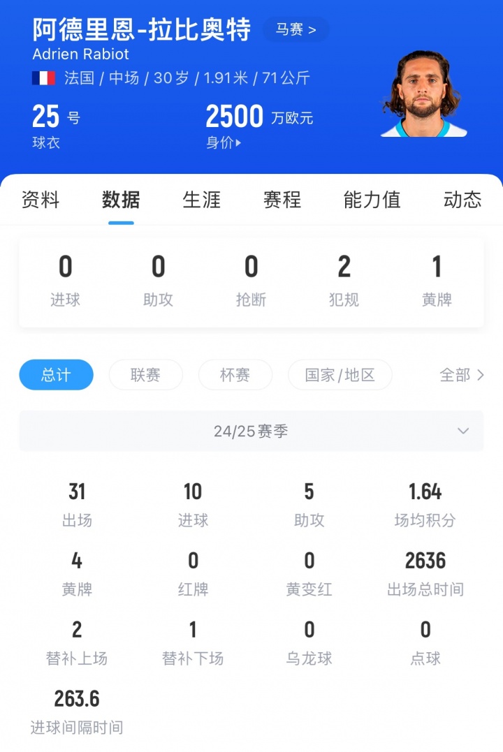 拉比奥特现年30岁,客岁从尤文解放转会至马赛,上赛季为马赛出场31次,孝顺10球5助攻,现身价2500万欧,他与马赛的条约至来岁到期。