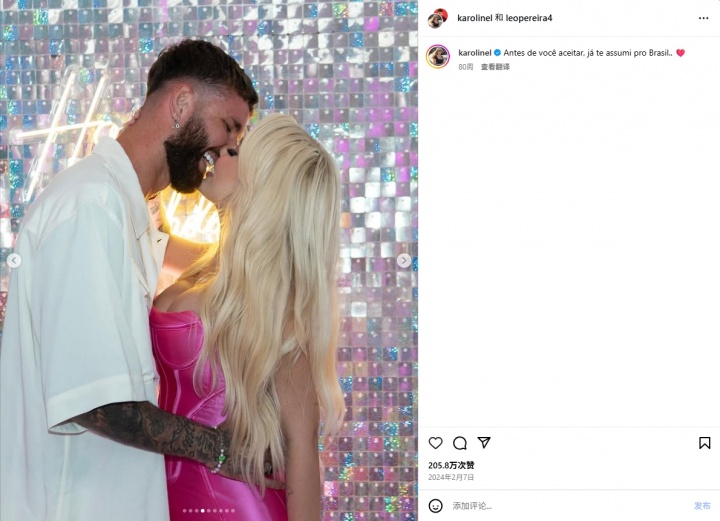 Tainá Castro是里奥-佩雷拉的前妻,两东谈主育有2个孩子。这对佳耦于2023年9月分居,年底复合失败,2024年1月离异。2024年2月,里奥-佩雷拉与米利唐前女友Karoline Lima官宣恋情。