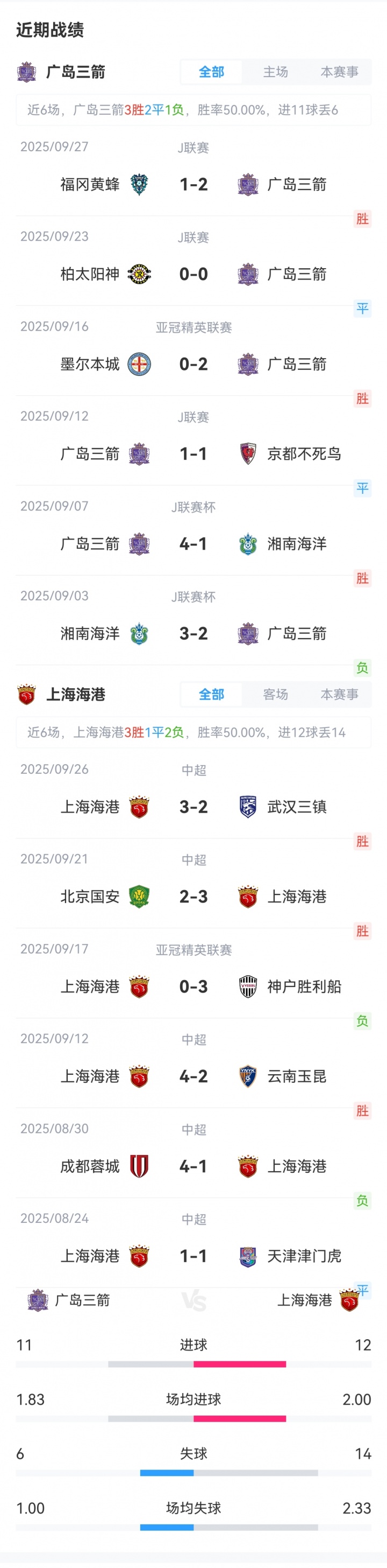 上海海港首战0-3失利排行东亚区垫底,广岛三箭首战2-0取胜排行东亚区第2。