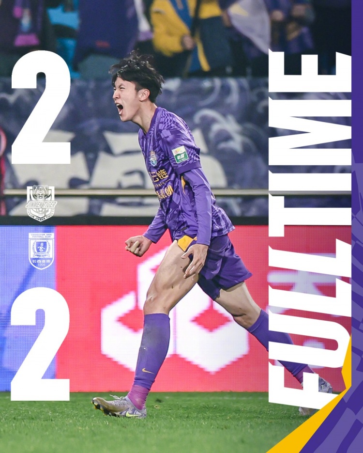 全场比赛末端,津门虎队在比赛尾声阶段连入两球,最终2:2战平长春亚泰!