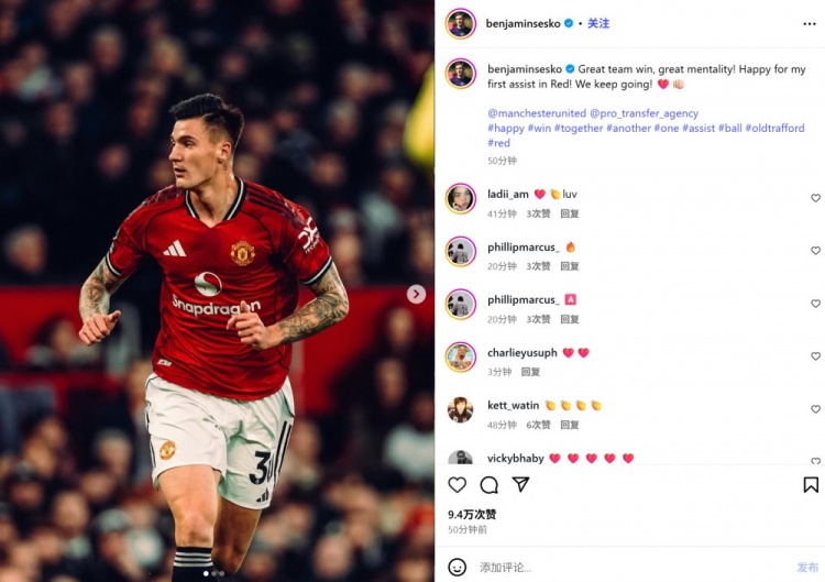 他也在赛后通过社媒晒出我方的比赛照,并配文:“伟大的团队获胜,伟大的坚硬力!为我在红魔的首个助攻感到答应!让咱们不时落魄!❤️👊🏻”