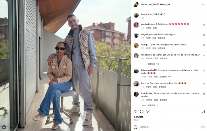 11月05日讯 亚马尔父亲、39岁的穆尼尔-纳斯拉维近日屡次在社媒晒出与23岁女友Khristina的合照,其中一条动态配上了“🖤💍”的口头秀雅,激发估计。