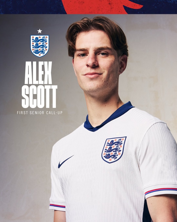 英格兰队公布新一期名单,伯恩茅斯22岁中场斯科特初次入选,英格兰队官方社媒晒出斯科特的海报,对他暗意祝愿。