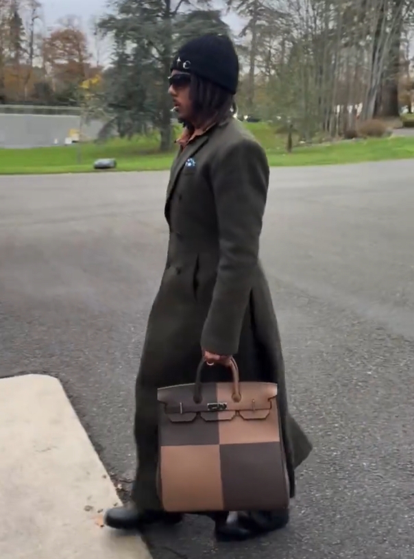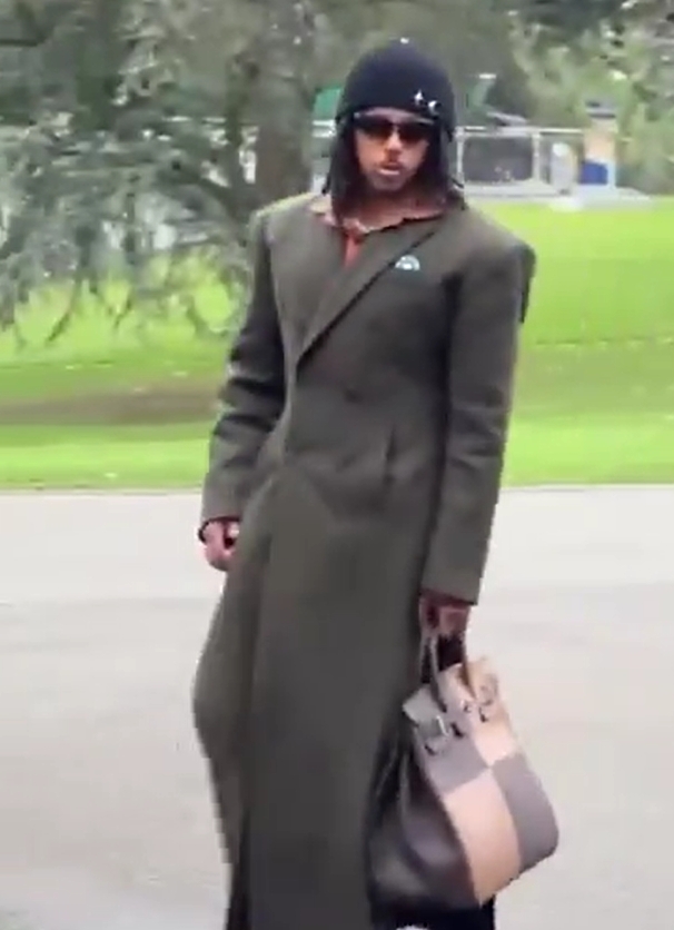 太潮了!孔德最新先锋穿搭:身穿长大衣,手拿包
