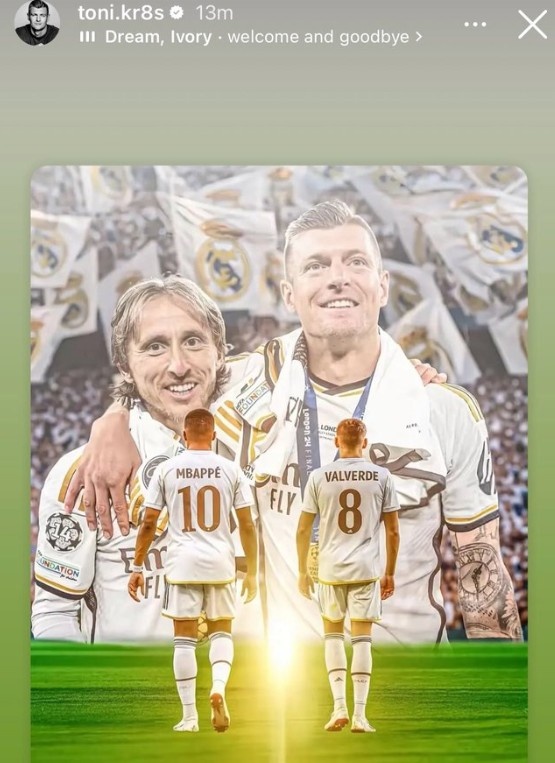 在酬酢媒体上,克罗斯晒出了我方和莫德里奇、姆巴佩和巴尔韦德的殊效合成图,并写说念:梦思和荣耀,接待和告别!