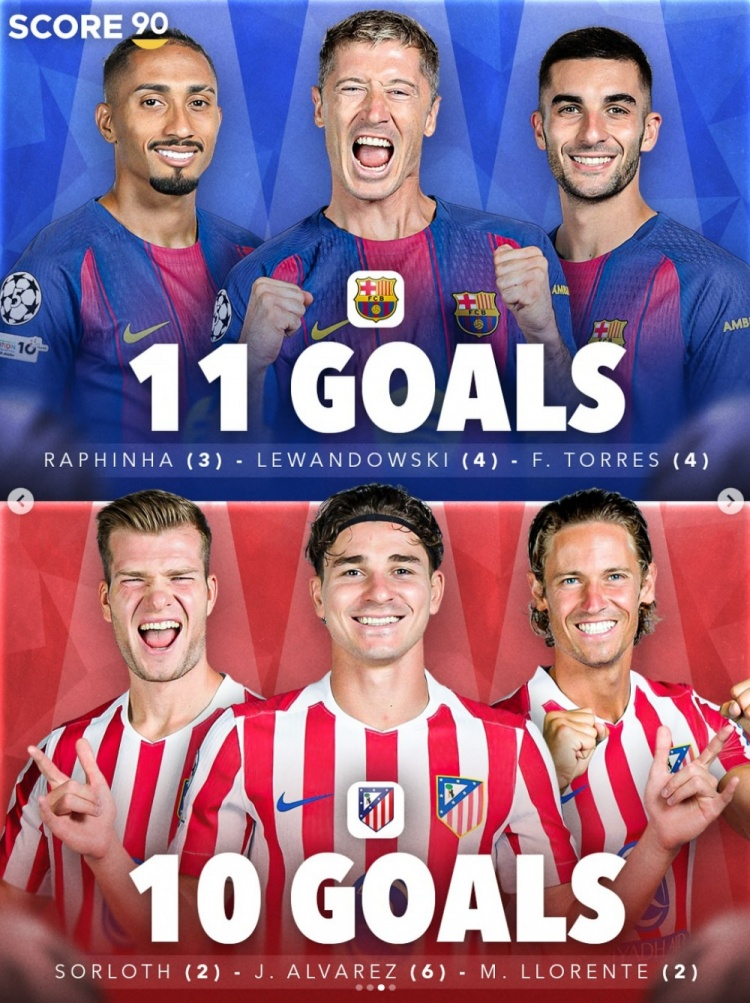 阿尔瓦雷斯6球、索尔洛特2球、略伦特2球