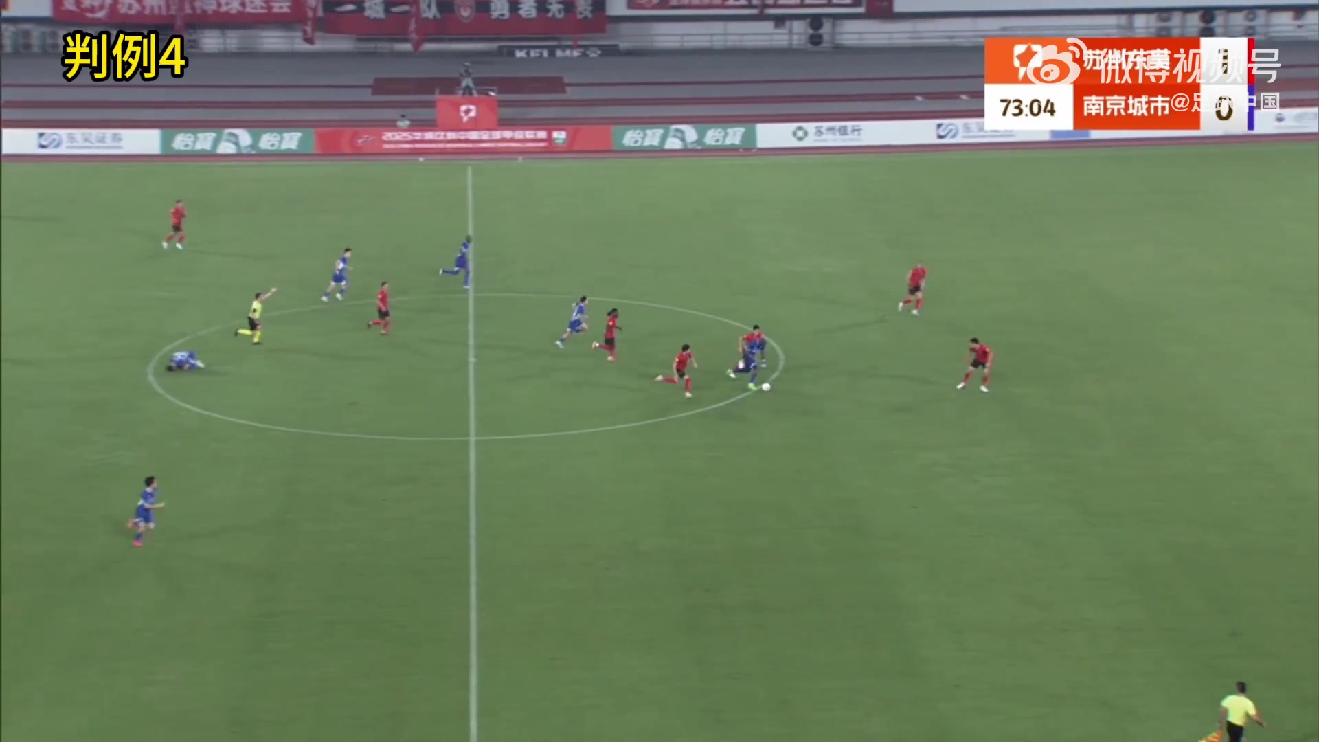判例四:中甲联赛第24轮,苏州东吴vs南京城市。比赛第74分钟,苏州东吴29队员犯规后倒地不起,南京城市2号队员过来用手战役苏州东吴29号面部,评判员向南京城市2号出示红牌罚令出场。