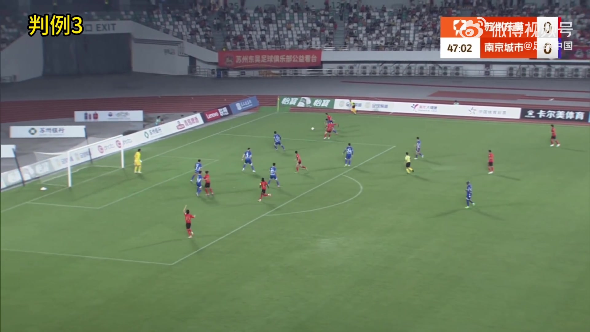 判例三:中甲联赛第24轮,苏州东吴vs南京城市。比赛第48分钟,苏州东吴6号队员头球射门,南京城市守门员将球扑出,助理评判员默示球的全体照旧越过球门线,评判员判苏州东吴队进球得分。