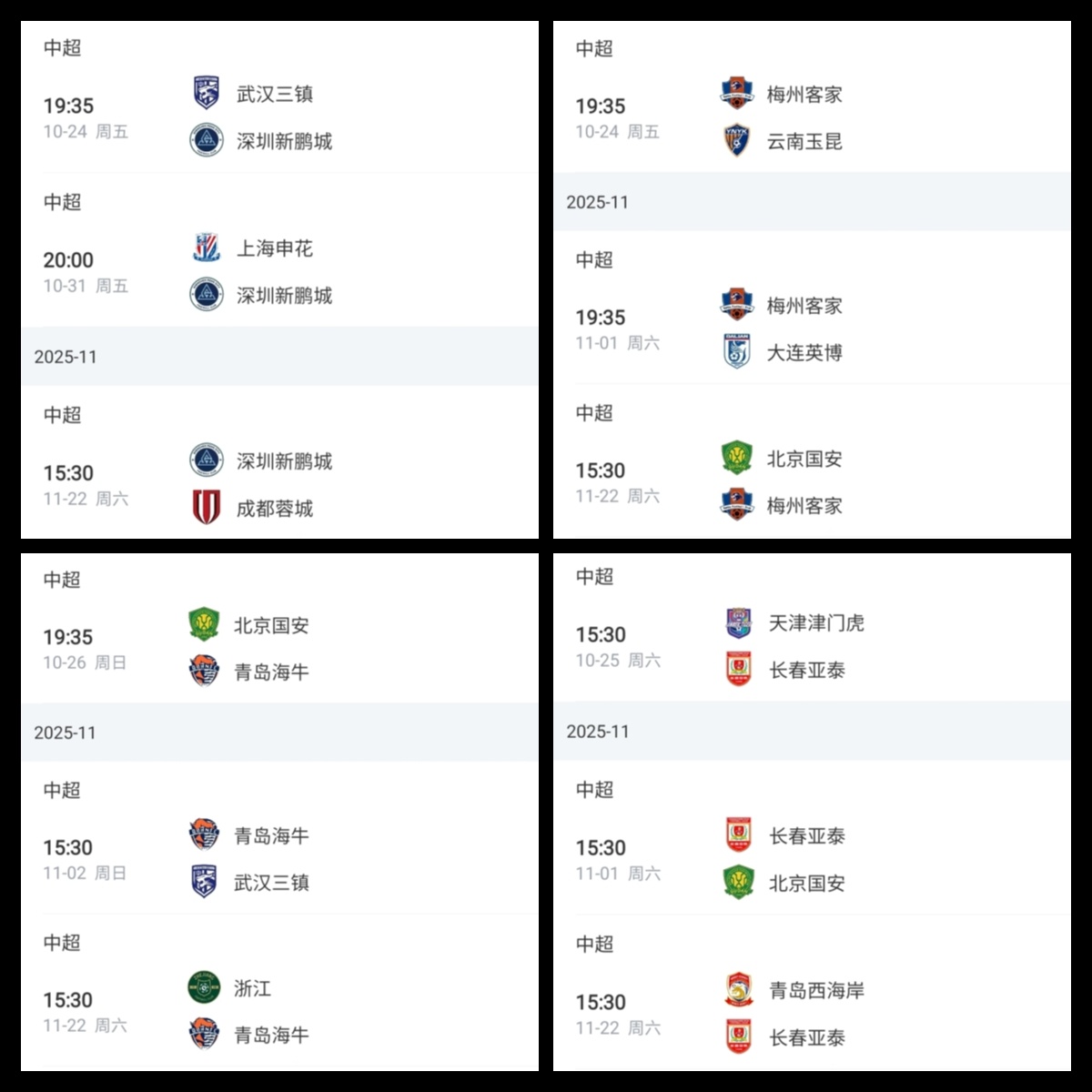 深圳新鹏城、梅州客家、青岛海牛、长春亚泰临了3轮赛程