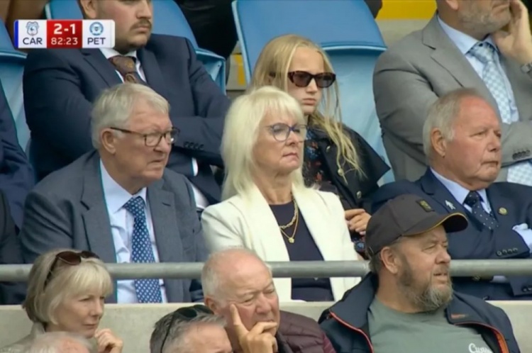 卡迪夫城最终2-1取得比赛,弗格森是这场比赛的次要看点,他被录像机捕捉到坐在看台上,身旁是彼得堡联足球总监巴里-弗莱。弗莱曾在老特拉福德青训营受训,但未代表一线队出场过。