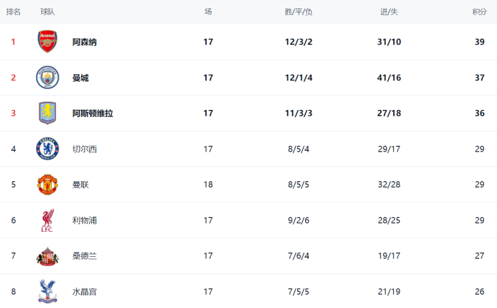 这场比赛让英超争四神情大乱。3大权门积分磋商,切尔西、曼联和利物浦都是29分。切尔西领有净胜球的上风,名顺序4。曼联则升到第5名。利物浦净胜球最少湘超最野顶流,掉到第6名。不外,曼联比切尔西和利物浦多踢1场,第5的位置并不雄厚。