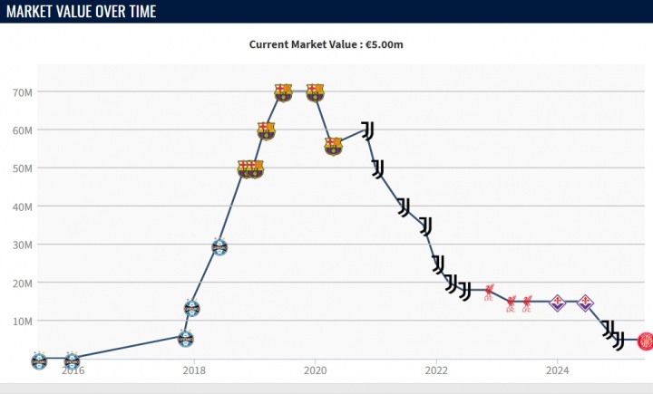 成株连😢29岁阿图尔络续四年被外租,巅峰身价7000万现仅500万