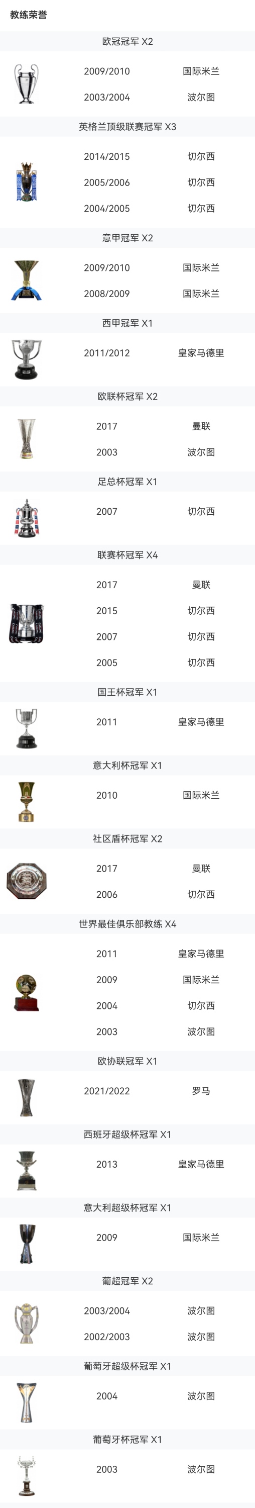 62岁的穆里尼奥最近一次率队夺冠也曾21/22赛季在罗马拿到的欧协联冠军。再往前追思,便是曼联本领16/17赛季拿到的“小三冠”。