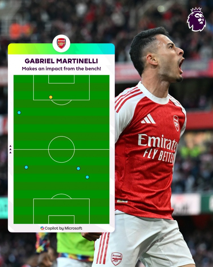 9月22日讯 英超官方发布数据,马丁内利替补登场后仅触球5次,便为阿森纳1-1逼平曼城。