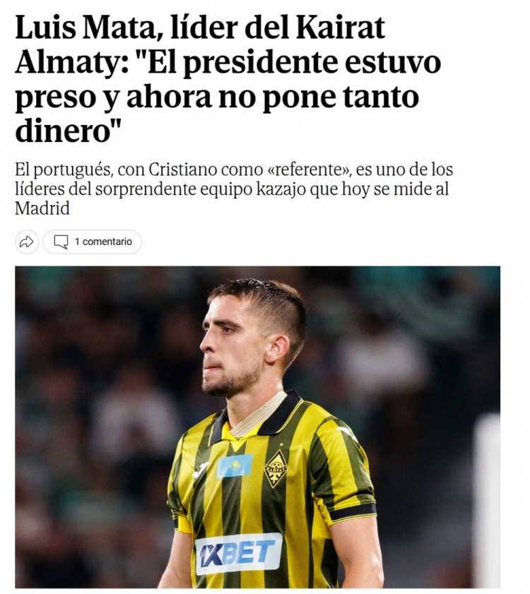 9月30日讯 欧冠第2轮,哈萨克斯坦球队阿拉木图凯拉特主场迎战皇马。赛前,凯拉特的葡萄牙后卫路易斯-马塔继承西媒《寰宇报》采访,谈到了球队的一些情况。