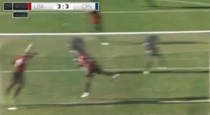 佛得角队员射门遭敌手门线突围