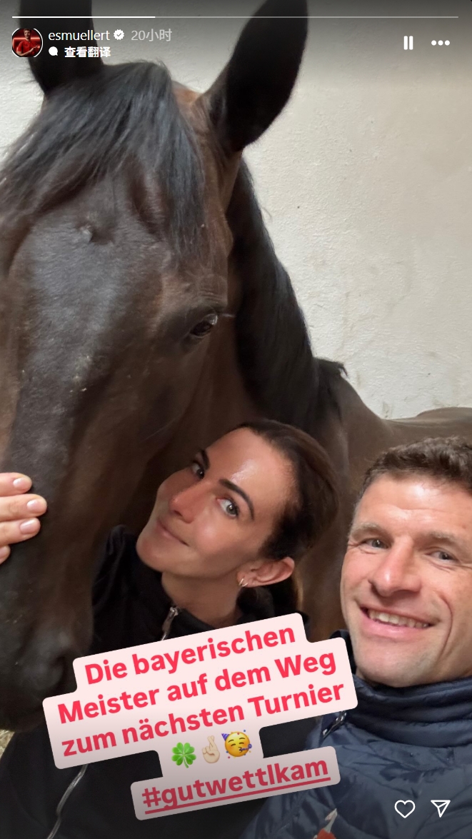 破婚变据说?穆勒晒与妻子和马匹合照:巴伐利亚冠军准备下场比赛