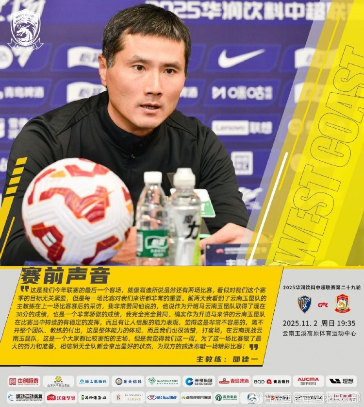 11月1日讯 中超第29轮,青岛西海岸将在客场挑战云南玉昆。赛前,西海岸主帅邵佳一和球员高迪招揽了采访。