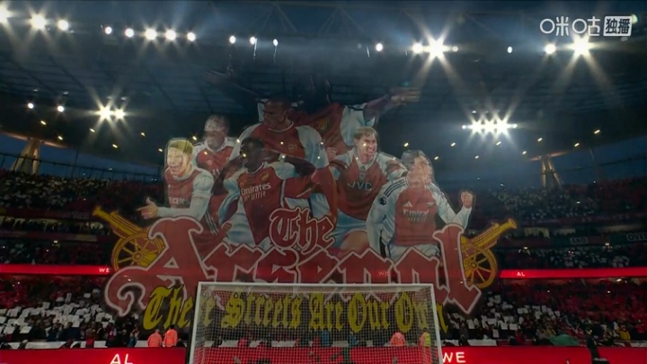 11月24日讯 英超第12轮北伦敦德比,阿森纳vs热刺,赛前阿森纳展示巨型tifo:这条街属于咱们!