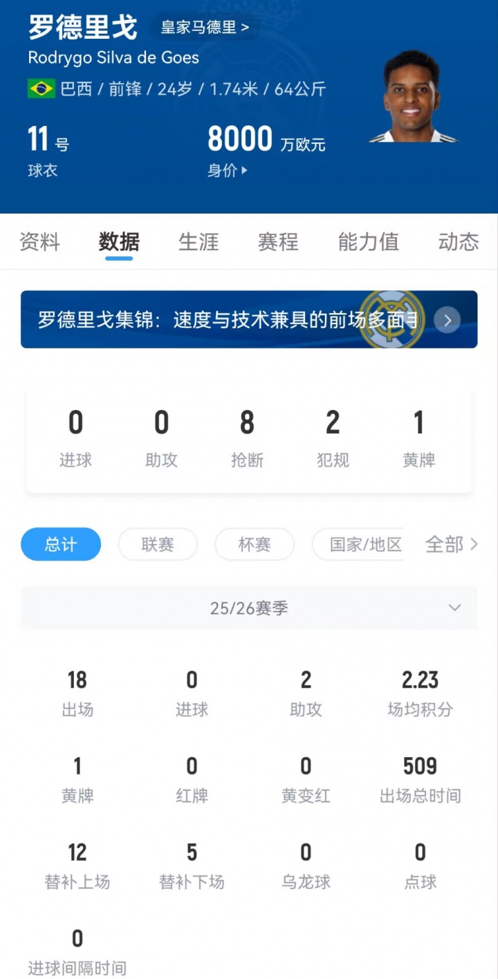 商酌到具体到分钟的时分,罗德里戈骨子上依然成为了皇骑兵史球荒最长的时尚,而况这个数字可能还将陆续增多。