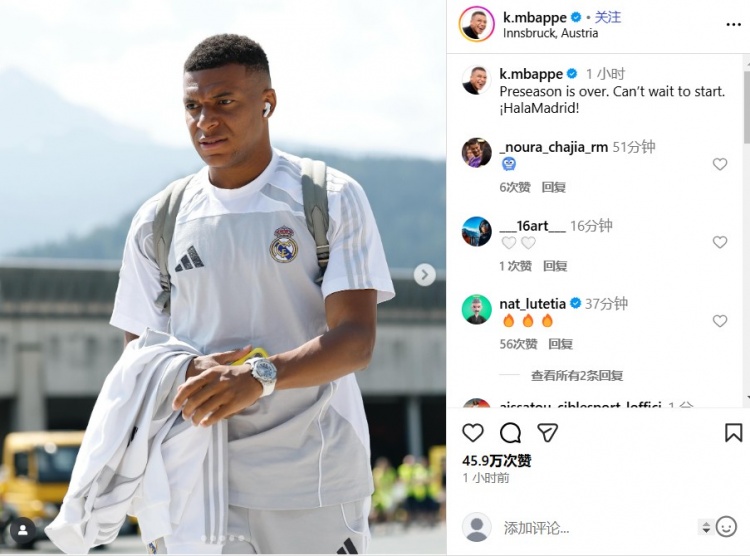 在INS上,姆巴佩写说念:季前准备也曾畛域,迫不足待念念要开启新赛季。加油皇马!