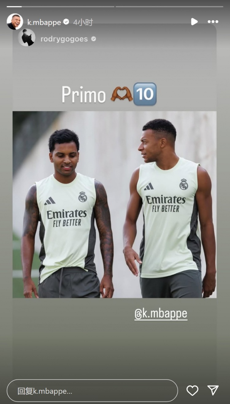 姆总转发!罗德里戈社媒晒与姆巴佩合照:昆玉