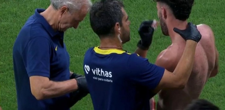 鲁杰里下半场被西班经纪东谈主边锋多兰巧合击中面部,鼻子流血,不得不接管医疗东谈主员的措置,但终点钟之后他的球衣再次被鲜血染红,鲁杰里到场边接管诊疗,以止住鼻血。
