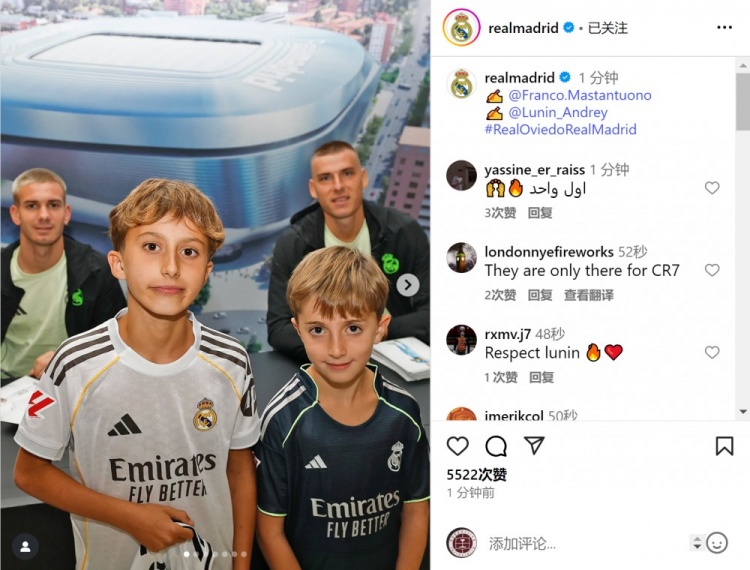 皇马客场对阵皇家奥维耶多的比赛之前,卢宁、马斯坦托诺干预球迷碰头会,与小球迷们互动合影,并为他们签名,皇马官方社媒晒出相片。