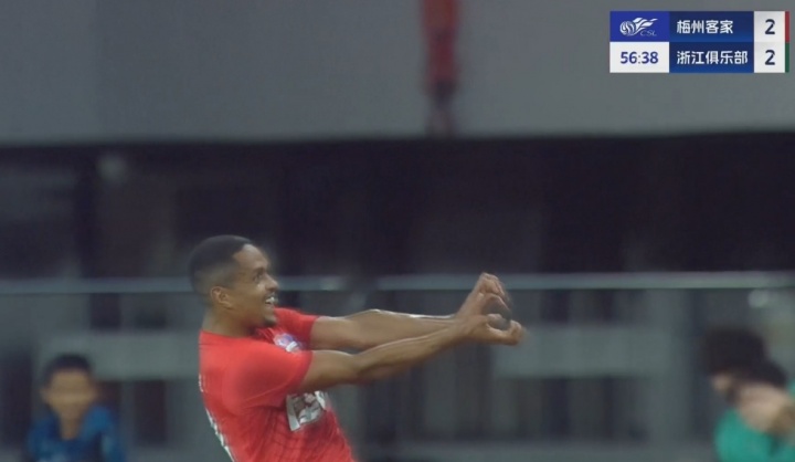 比赛第56分钟,奥马尔松禁区内分球,罗德里格内切一步打近角破门,梅州2-2扳平浙江!