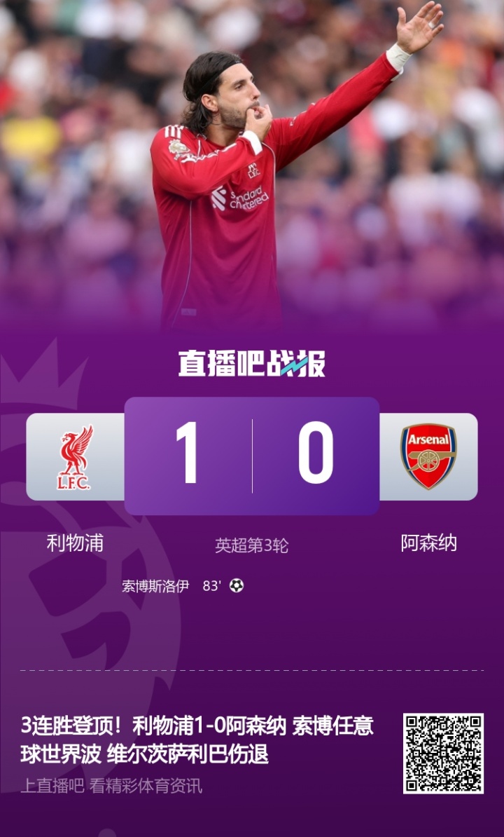 3连胜登顶!利物浦1-0阿森纳 索博自便球全国波 维尔茨萨利巴伤退