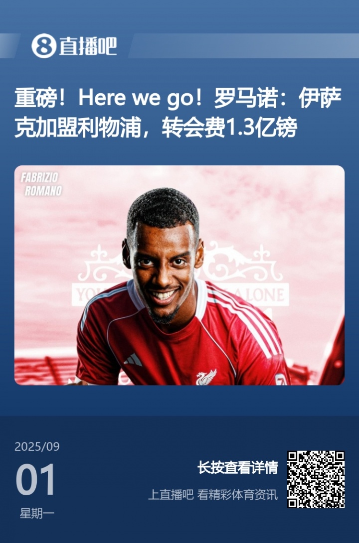 重磅!Here we go!罗马诺:伊萨克加盟利物浦,转会费1.3亿镑