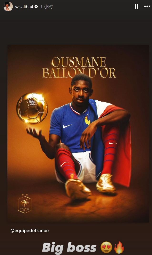 萨利巴社媒祝颂登贝莱赢得金球奖:大BOSS😍🔥