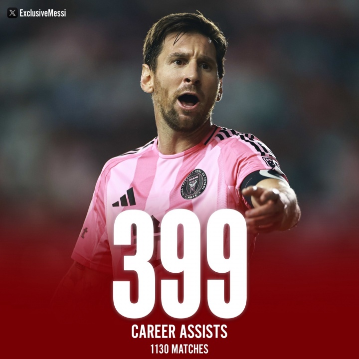 里程碑行将到来!38岁梅西已送出399助,距离400助仅差1助