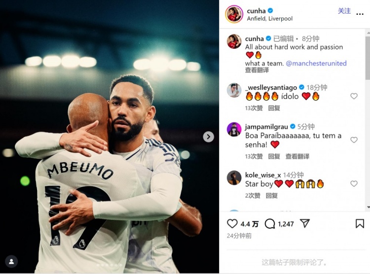 库尼亚社媒庆祝双红会取胜:一切源于奋勉与情怀,何等棒的球队!