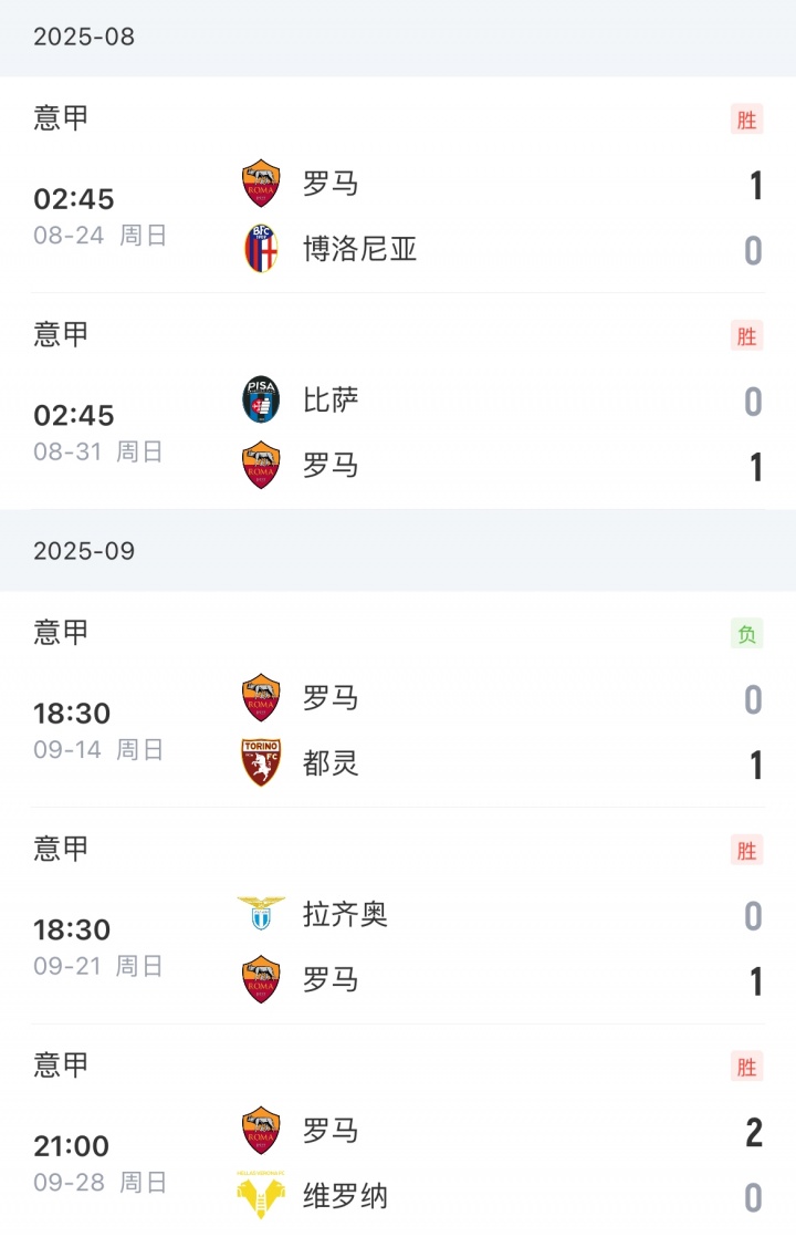 在罗马的7个胜场中,有6场王人是1球险胜,唯独例外的1场也仅是2球治服维罗纳。