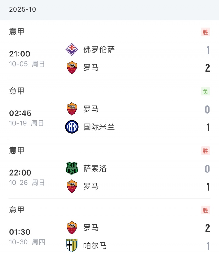 而2个负场中,罗马阔别王人所以0-1的比分败给王人灵和国米。