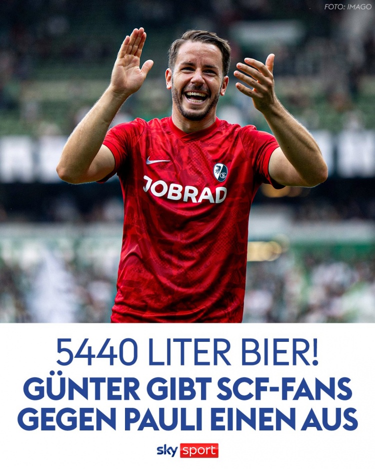 据德国天外体育报说念,为了庆祝罢了这一里程碑,冈特将在这场比赛中请弗赖堡球迷喝啤酒,他将为球迷准备5440升啤酒。