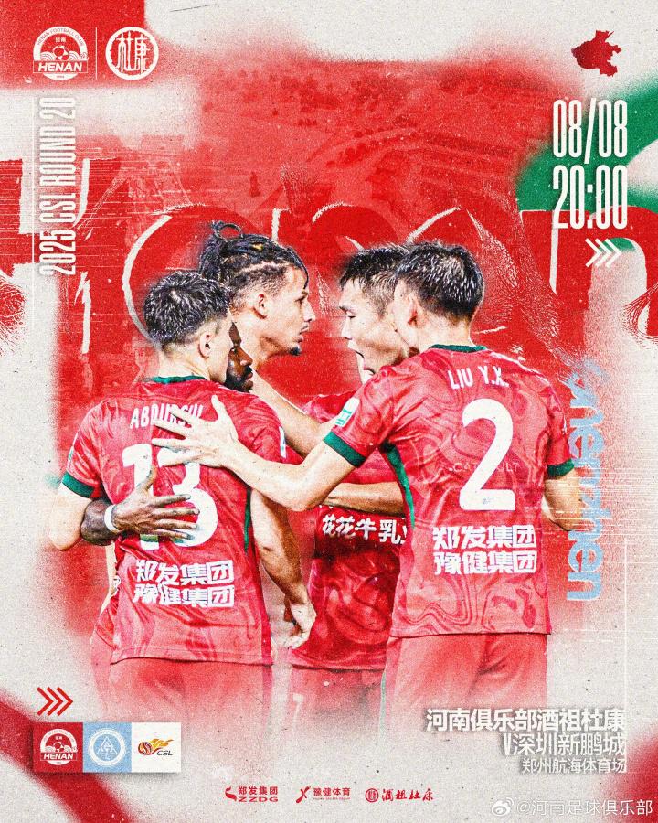 直播吧08月08日讯 北京时辰20:00,中超第20轮,河南vs深圳新鹏城,赛前,两边首发出炉。