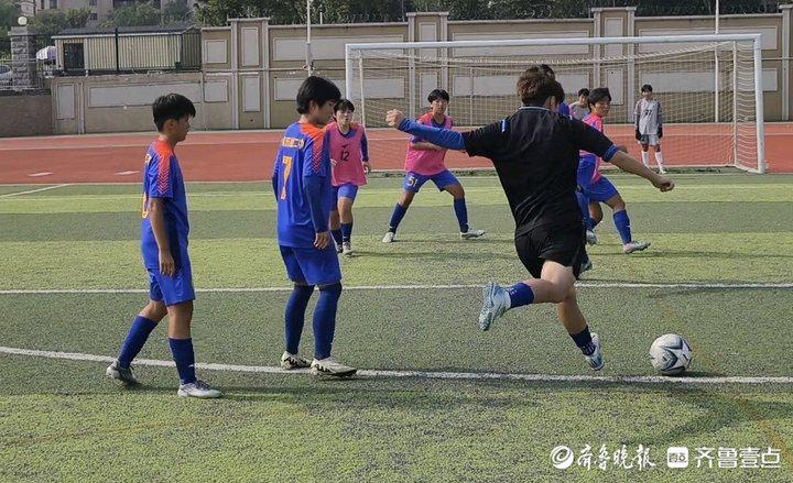 八月黎明的阳光盛暑而扎眼,济南历城二中女足身着蓝色和粉色的球衣分红两队,还是运转了测验。“快快快,构成东说念主墙!”喝彩声、呼应声雄起雌伏,球在空中划过一说念说念苍劲有劲的曲线。