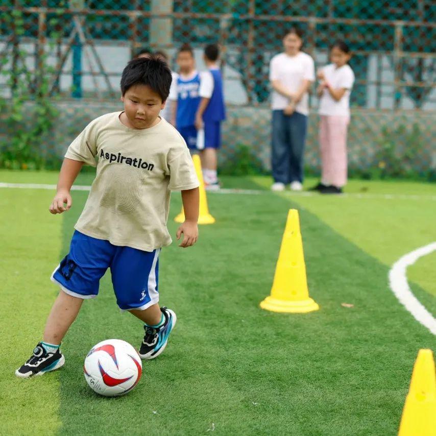 在绕桩跑阵势中,小一又友们在3米阻隔的桩间带着球穿梭驰驱,看似渺小的足球却瞬息“不听话”了起来,小一又友们每一次告成跑回齐能收货一阵荧惑。“慢点毋庸震惊!”“跑得可以!”“踢球不要用太纵容气”傍边不雅看的家长和职责主谈主员齐耐性肠匡助孩子们尽快掌执带球本领,关于大部分小一又友来说,在绿茵场上驰驱的这段时刻,成为他们的足球发蒙。