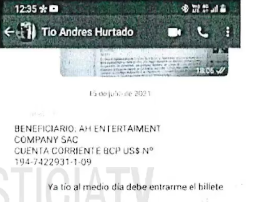 而据秘鲁媒体《infobae》的最新音信显现,萧涛涛当今仍是转为检方的“弱点证东谈主”,提交出笔据来指认胡尔塔多的犯警活动。根据萧涛涛提供的聊天信息截图,胡尔塔多如实曾发给他一个银行账户号码,要他把“改国籍”的钱打到这个账户上。